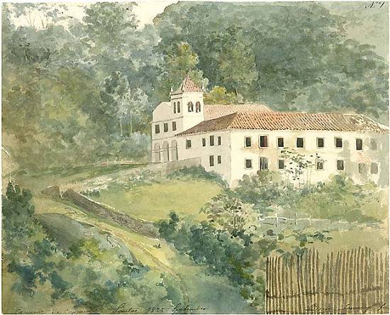 Raro exemplo de registro urbano paulista, uma aquarela de Taunay datada de 1821 mostra o Mosteiro de São Bento, em Santos, ainda cercado pelo mato de um morro não ocupado por outros moradores.