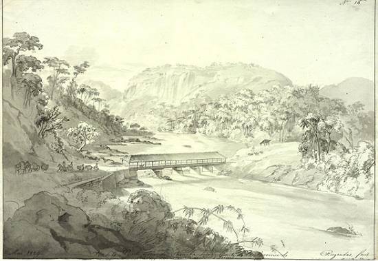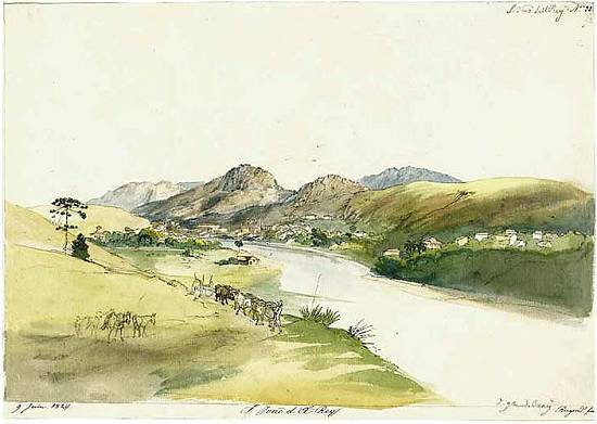 Vista da ponte nova do Paraíba (aquarela de Johann Moritz Rugendas, em maio de 1824)