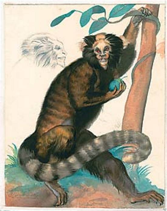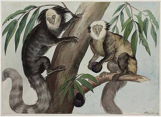 Sagui-de-cara-branca (aquarela terminada em 1823, por Johann Moritz Rugendas)