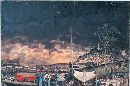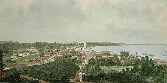 Vista de Santarém sobre o Rio Tapajós, Pará (pintada por Hercules Florence em 1828)