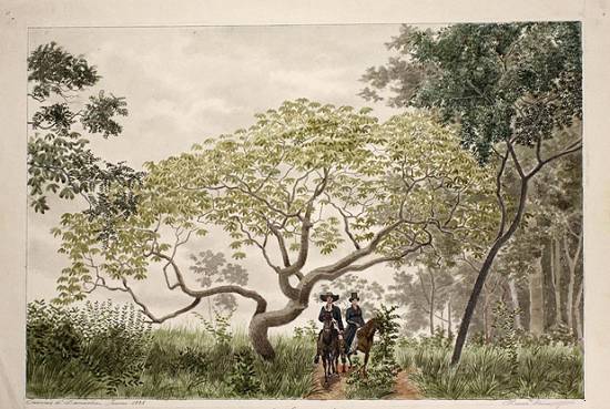 Embira açú. Arredores de Diamantino (aquarela de Hercules Florence em 1828)
