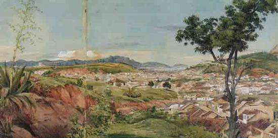Vista de Barbacena (em 1824, por Johann Moritz Rugendas usando aquarela e tinta, à pena)