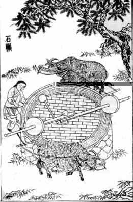 uma aportação da tecnologia chinesa, certamente transmitida por via dos portugueses. Até lá o Ocidente adoptou o sistema utilizado para a moagem da