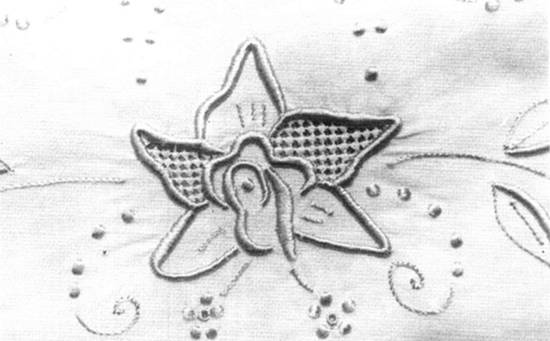 Motivo para jogo de cama: pontos crivo, bola, viúva e recheio