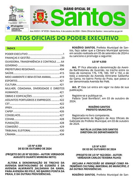 Lei 4.550/2024, no Diário Oficial de Santos de 4/10/2024, página 1