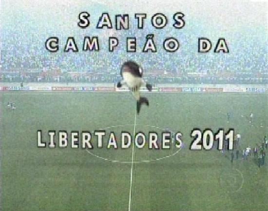 Vídeo com os momentos finais do jogo Santos 2x1 Peñarol, no estádio paulistano do Pacaembu, na noite de 22/6/2011 (transmissão pela Rede Globo de Televisão), vídeo postado no YouTube em 23/6/2011
