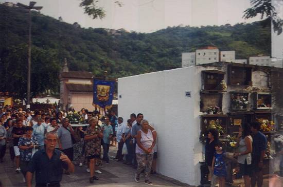 Saída da procissão, na capela do Cemitério da Filosofia, em 2004
