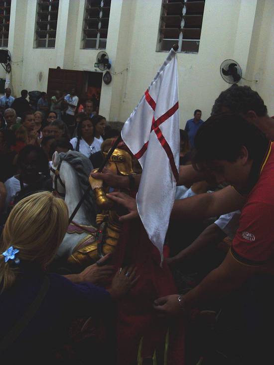 No dia dedicado a São Jorge, ocorre anualmente em Santos uma procissão em sua homenagem, como esta, realizada em 28 de setembro de 2008, das 19 às 21 horas, na Igreja São Jorge Mártir (situada na Praça Rubens Ferreira Martins, 41, perto da Avenida Afonso Pena, no bairro do Estuário) - fotos enviadas a Novo Milênio pelo professor de História e pesquisador Francisco Carballa: