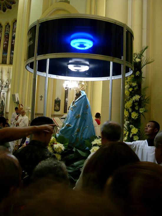imagem, mantida na capela do alto do Monte Serrat, é levada em procissão morro abaixo, até a Catedral, onde permanece alguns dias, retornando no dia 8 de setembro, sua data