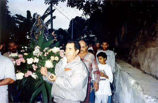 A festa de Nossa Senhora do Monte Serrat, em 1994. Na segunda foto, em primeiro plano, o sr. Luiz, andorista desde 1955. Na terceira foto, de casaco marrom, o então futuro diácono Miguel Fotos: acervo de Francisco Carballa