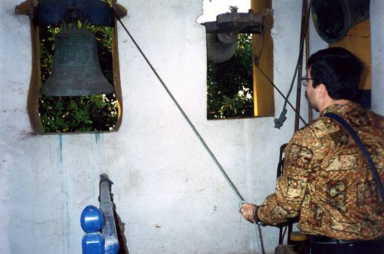 Francisco Carballa, atuando como sineiro na capela do Monte Serrat, durante a festa de setembro de 1997 Fotos: acervo de Francisco Carballa |