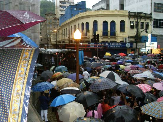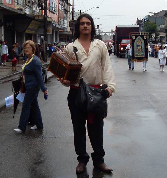 Em setembro de 2009, a imagem ficou exposta no saguão da Prefeitura de Santos. Marcelo Teixeira, da Universidade Santa Cecília (Unisanta), e o professor Carballa, na Avenida São Francisco. Nas outras fotos, os preparativos para a festa, com a chegada da imagem ao Palácio José Bonifácio (sede da Prefeitura) sob chuva e queima de fogos, e a multidão aglomerada na Praça Mauá