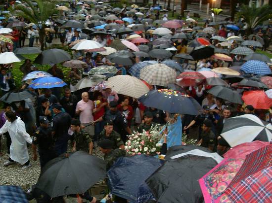 Em setembro de 2009, chegada da imagem da padroeira ao saguão da Prefeitura, onde foi recebida pelo prefeito João Paulo Tavares Papa e seu secretariado.
