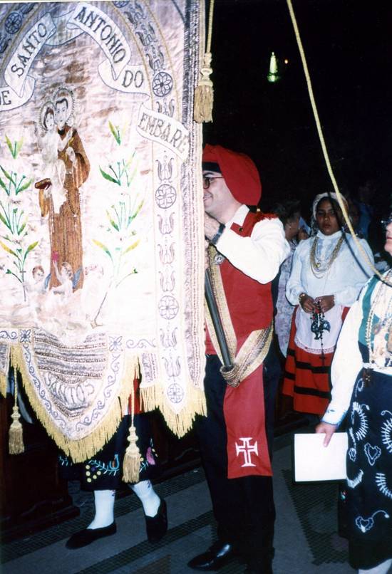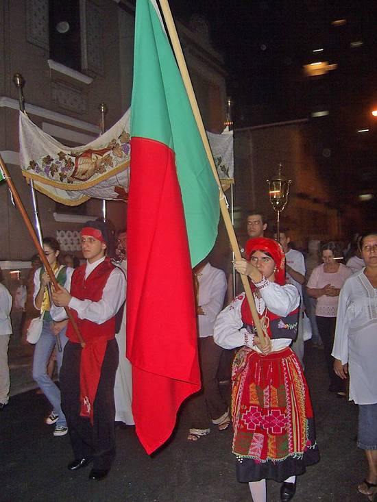 Participação do Pastoreio de Fátima, com trajes lusitanos (devido à origem portuguesa da festa) e o pálio que cobre a relíquia de Santo