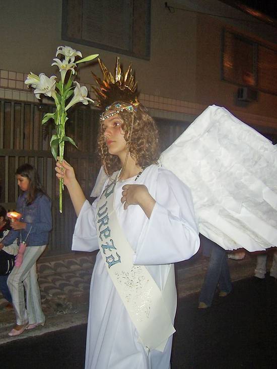 O "Anjo da Pureza" (representado por Mirella Gimenes Martelo), na procissão de Santo Antonio do Embaré, em 2013
