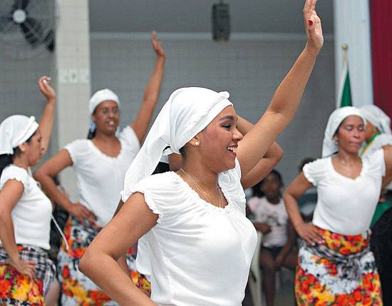 O Grupo Cultural Cabo-Verdiano apresenta danças típicas, durante uma festa da comunidade em