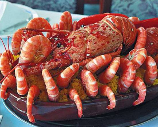 lado e "houve uma época em que havia fila para comer a paella". A paella valenciana do Vista ao Mar leva camarões, lagosta, polvo,