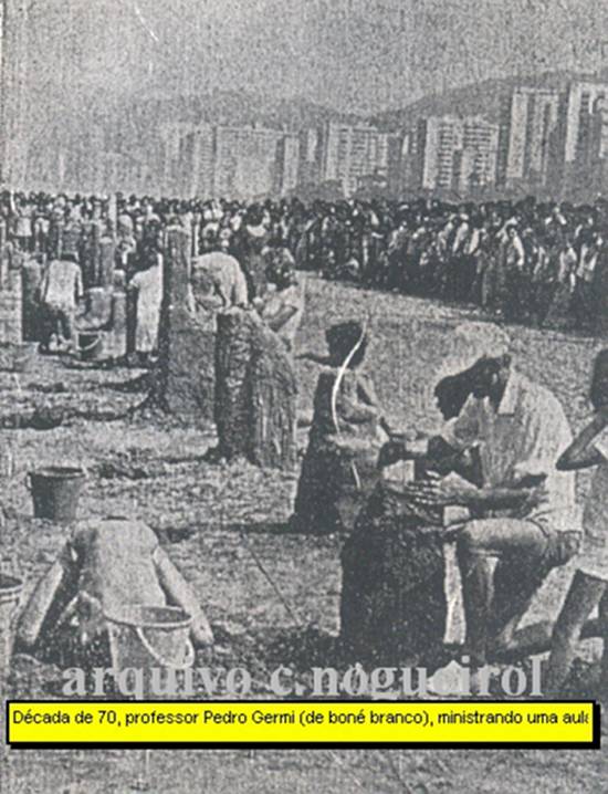 Na década de 1970, o professor Pedro Germi (em primeiro plano) ministrando uma aula