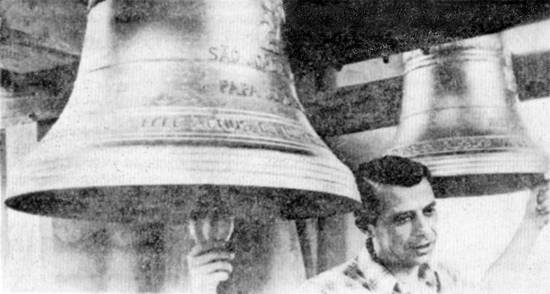 da igreja, cuja inauguração, às 22h30 do dia 24, marcará o início da festa. São três sinos de bronze, montados em carrilhão, e avaliados em Cr$ 500