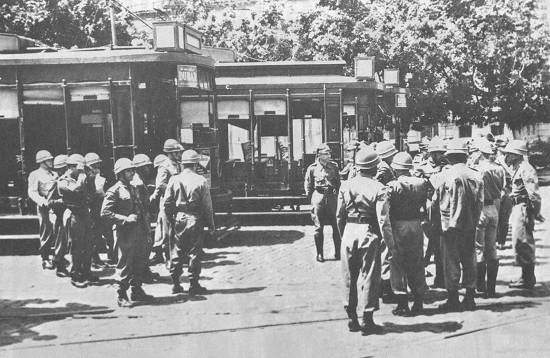 forças policiais ocupam a garagem dos bondes na Vila Mathias