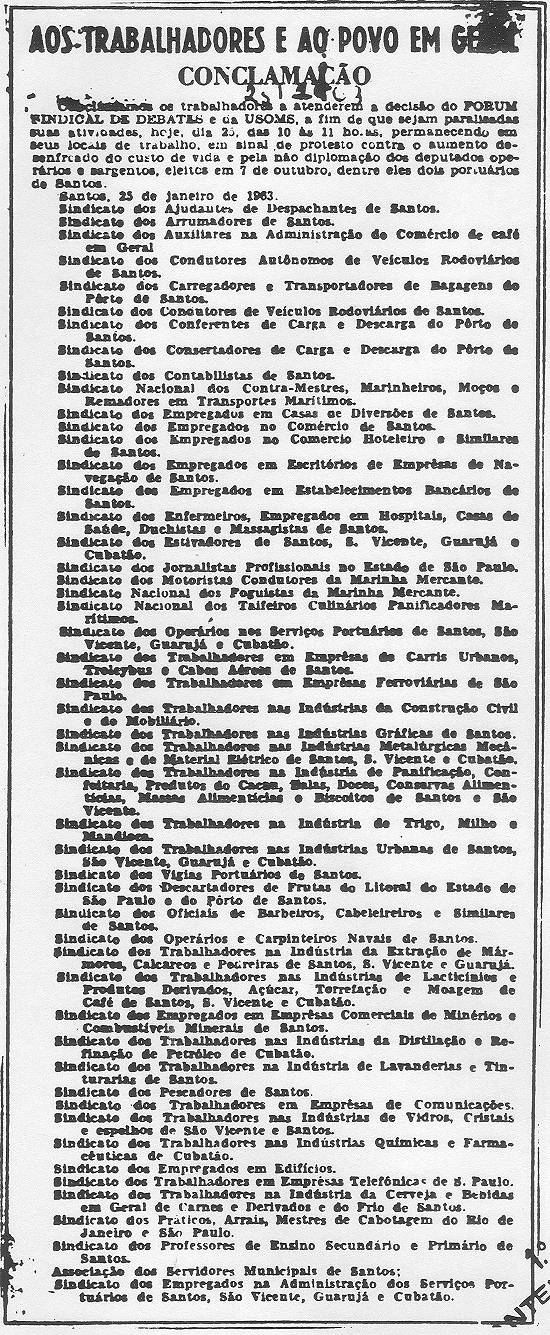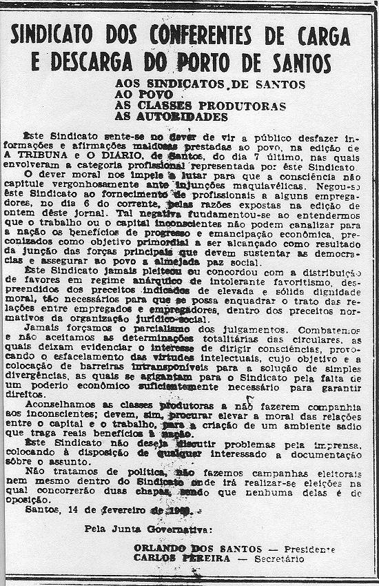 escrito em 1993), o jornalista e historiador santista Paulo Matos (falecido em julho de 2010) relata a história da fundação do Sindicato dos