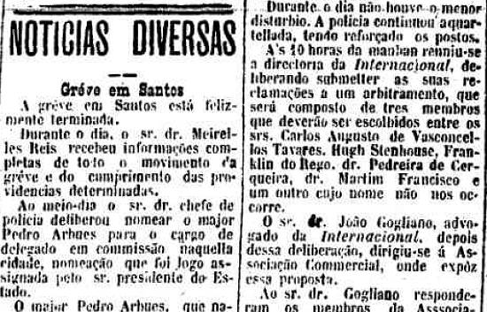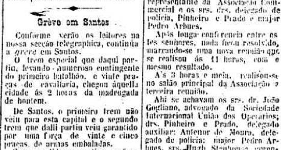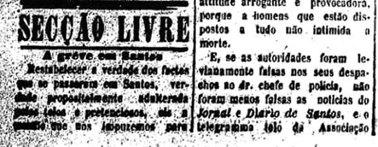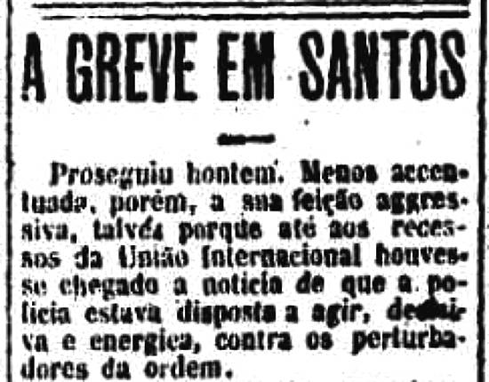 - Do nosso colega O Jornal, de Santos, transcrevemos a seguinte notícia sobre a greve