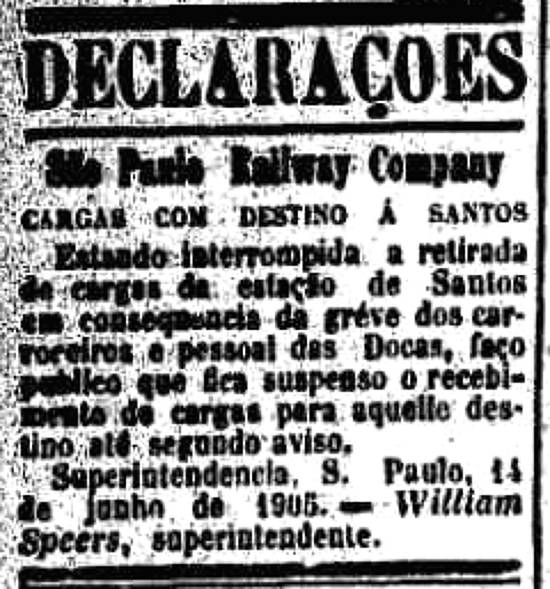 Superintendência, S. Paulo, 14 de junho de 1905 - William Speers,
