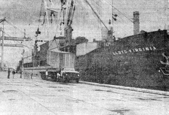 do dia 21 de bordo do Lloyd Virginia. No dia da inauguração, já havia cerca de 100 conteineres com carga no pátio. Todos retirados com