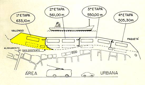mesmo tempo retificando o canal de navegação do Estuário - com o aterramento de uma curva do cais e modernização das instalações. As obras começaram