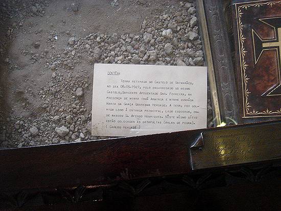 terra retirada do Castelo de Guimarães, no dia 8-5-1947, pelo encarregado do mesmo castelo, sargento aposentado sr. Ferreira, na presença de minha