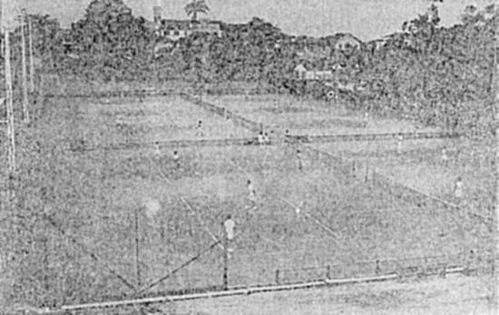 Uma vista das instalações do Tênis Clube, divisando-se 5 das 9 quadras existentes