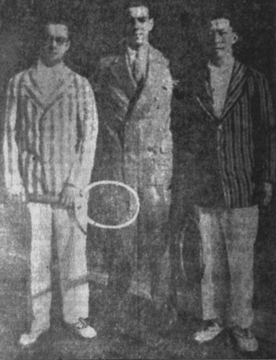 primeiro presidente do Tênis Clube de Santos e um de seus fundadores; à direita, o tenista japonês F. Mizukami e, ao centro, Amando Stockler Jr., o
