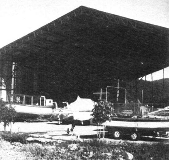 Contíguo à piscina foi construído um hangar que hoje abriga cerca de 100 embarcações,