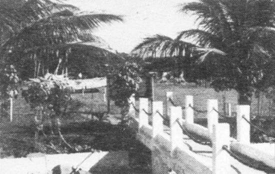 e um pátio para estacionamento e reparos de barcos, além de uma oficina e um galpão destinado à guarda de motores.