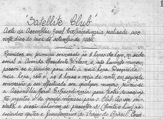 Trecho inicial da ata da assembléia de 20/9/1934 do Satellite Club