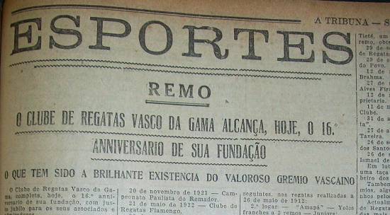O Clube de Regatas Vasco da Gama completa, hoje, o 16º aniversário de sua fundação, com justo júbilo para os seus associados e admiradores.