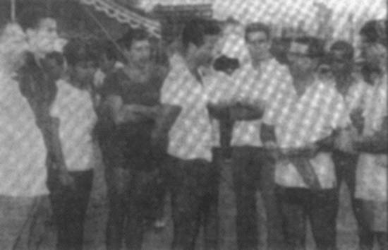 Na barraca de praia houve, para os atletas, festiva reunião, quando se fez ouvir o