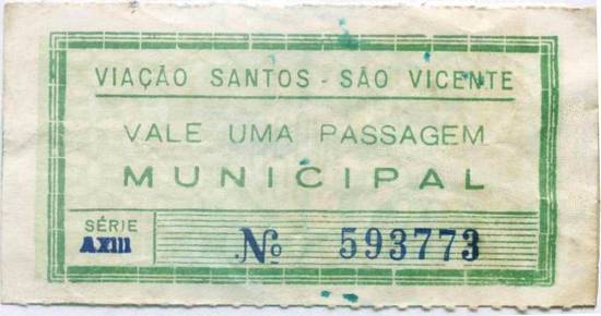 Bilhete de passagem municipal emitido em 1978 pela Viação Santos-São Vicente