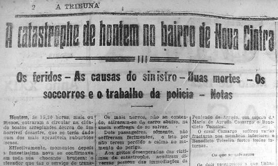 "Não vemos motivo de surpresa no desastre que ontem se deu na caranguejola da Nova Cintra. Esse desastre há muito que era esperado. A última vistoria feita naquela armadilha foi efetuada aí pelo dia 23 de maio do ano passado, se não nos enganamos.