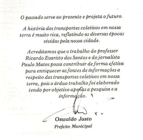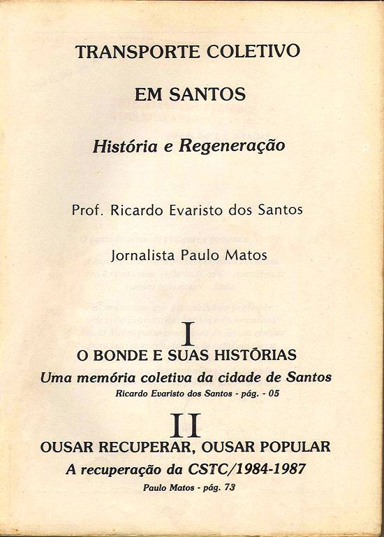 de Oliveira Matos, na obra Transporte coletivo em Santos - História e Regeneração. Com 160 páginas, ilustradas, o livro (registros CDD - 388.4 -