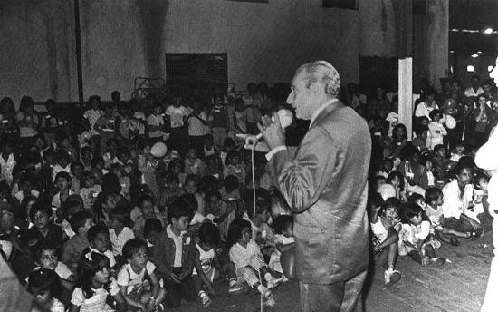 festa, dando sua mensagem às crianças
