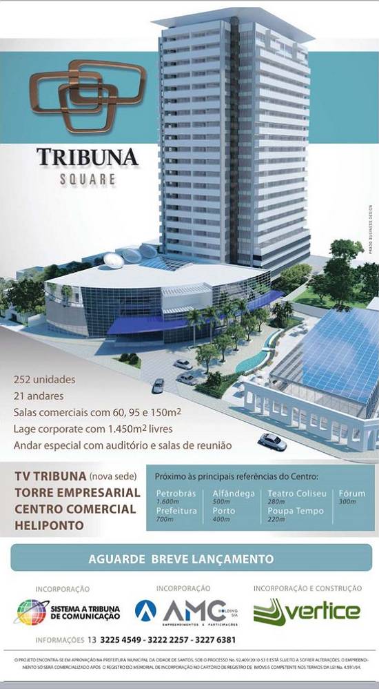 Tribuna apresentou o projeto de sua nova sede, a ser transferida das instalações vicentinas para Santos: o Tribuna Square foi lançado no final do ano,