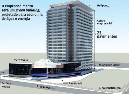 presente: a sede da TV Tribuna, afiliada da Rede Globo. A emissora será instalada em um novo empreendimento imobiliário, a ser construído na Rua