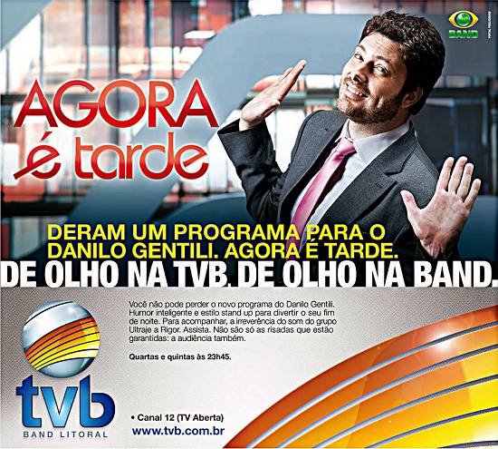 TVB-Band Litoral - Programa Agora é Tarde, com apresentador Danilo Gentili Publicado no semanário santista Jornal da Orla, edição de 9 e 10 de julho de 2011, página 17