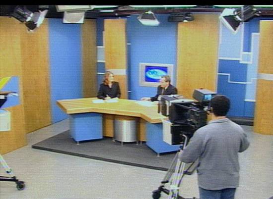 O estúdio do programa, na chamada para o bloco de debates Imagem: captura de tela, 19/7/2004, 13h17, arquivo Novo Milênio