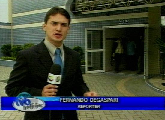 O repórter Fernando DeGaspari apresenta a primeira matéria do dia, na área de Saúde Imagem: captura de tela, 19/7/2004, 13h02, arquivo Novo Milênio