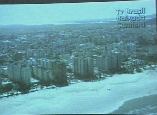 Vista aérea de Santos, na vinheta da emissora Imagem: captura de tela, 19/7/2004, 13h17, arquivo Novo Milênio