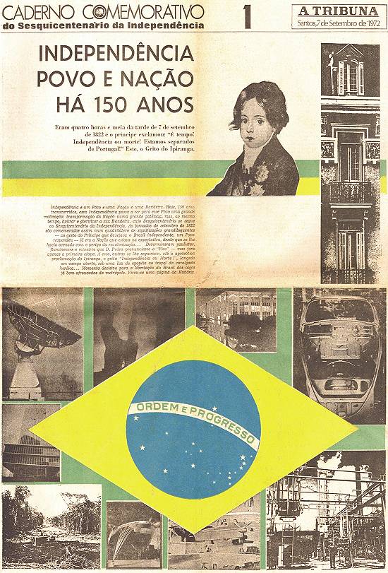 Capa do caderno especial comemorativo do Sesquicentenário da Independência, publicado pelo jornal santista A Tribuna em 7 de setembro de 1972. O texto: