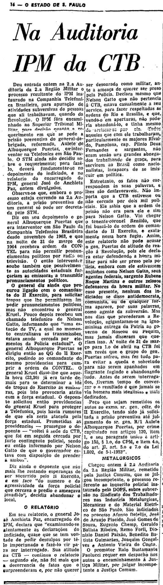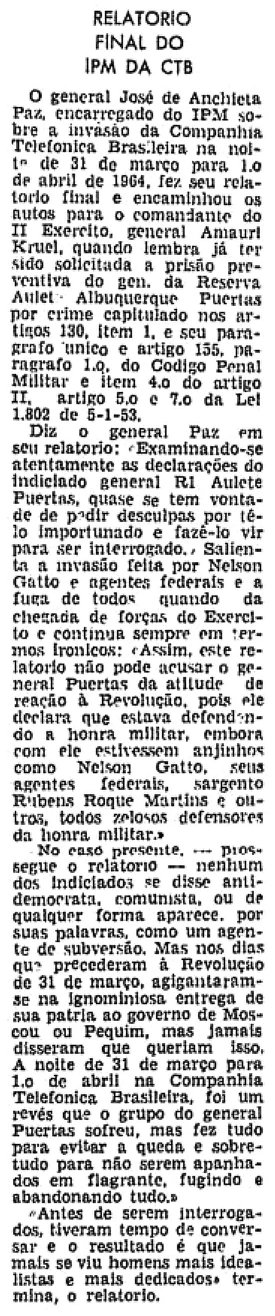"Diários Associados", detido pelo Exército por ter sido proprietário, há 14 anos, de um jornalzinho em Ferraz de Vasconcelos, subúrbio da Central do