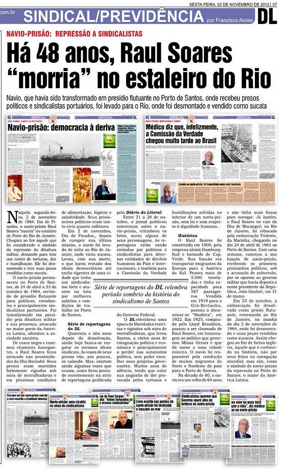 novembro de 1964, Dia de Finados, o navio-prisão Raul Soares "morria" no estaleiro do Porto do Rio de Janeiro. Chegava ao fim aquele que foi